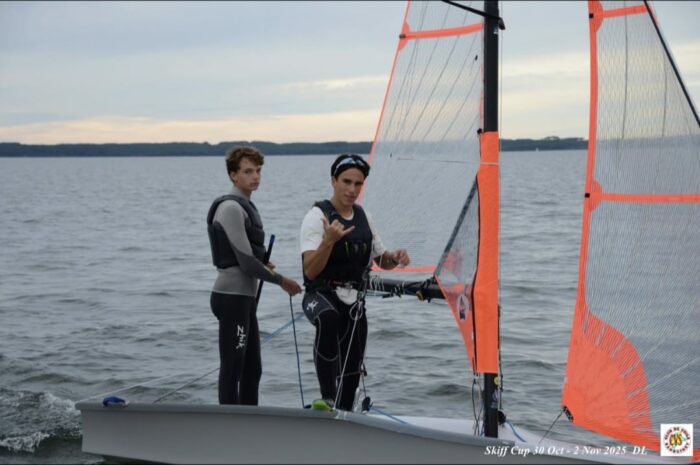 Pour cette première compétition, le National d’automne 2025 à Biscarosse, ce nouvel équipage réalise une belle performance en se classant 5ème ex-aequo (même nombre de points) avec le 3ème et le 4ème! Et cela après 5 journées de compétition et 12 courses courues dans des conditions de vent variées.
