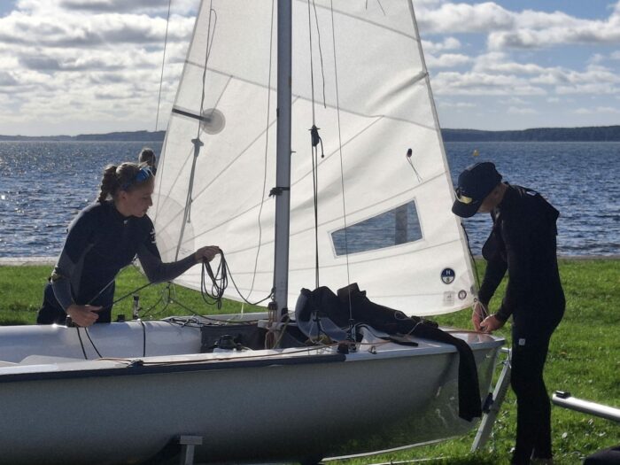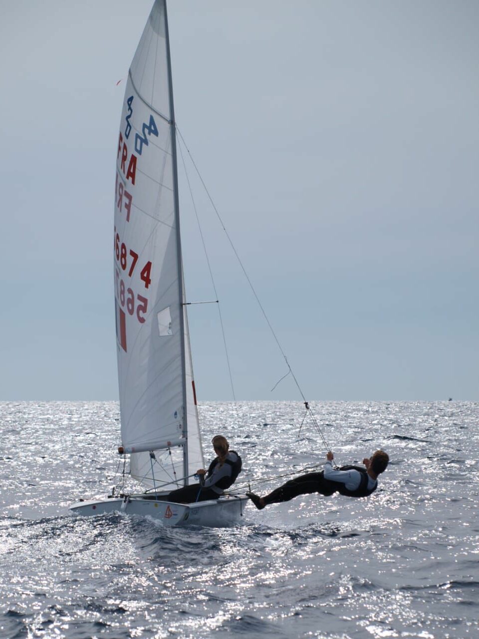Et commençons par notre championne de France en titre en 420, Elise, qui commence une nouvelle saison, mais avec un changement d’équipier. Elle navigue maintenant avec Marcel.